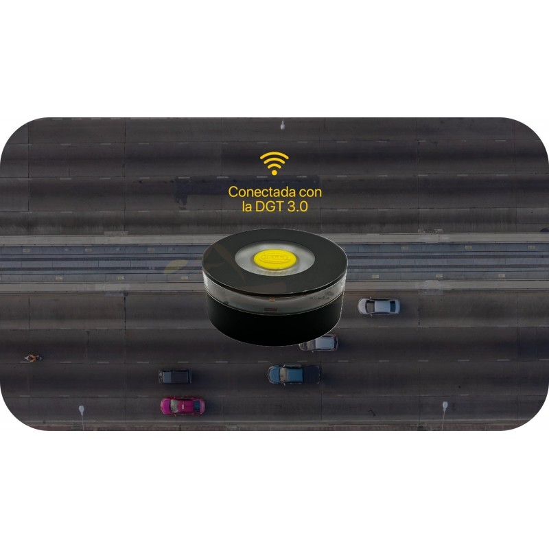 Es un dispositivo reglamentario de señalización luminosa certificado, homologado y conectado a la DGT 3.0 a través de la red de conexión IoT de Vodafone.