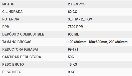 | TAMAÑO BROCAS | 100x800mm, 150x800mm, 200x800mm |