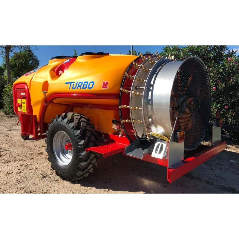 Equipado con depósitos en polietileno de 2000 litros, ventiladores de 920 mm y bomba de membrana 40/150 Zenyz, asegura una pulverización homogénea y fiable.