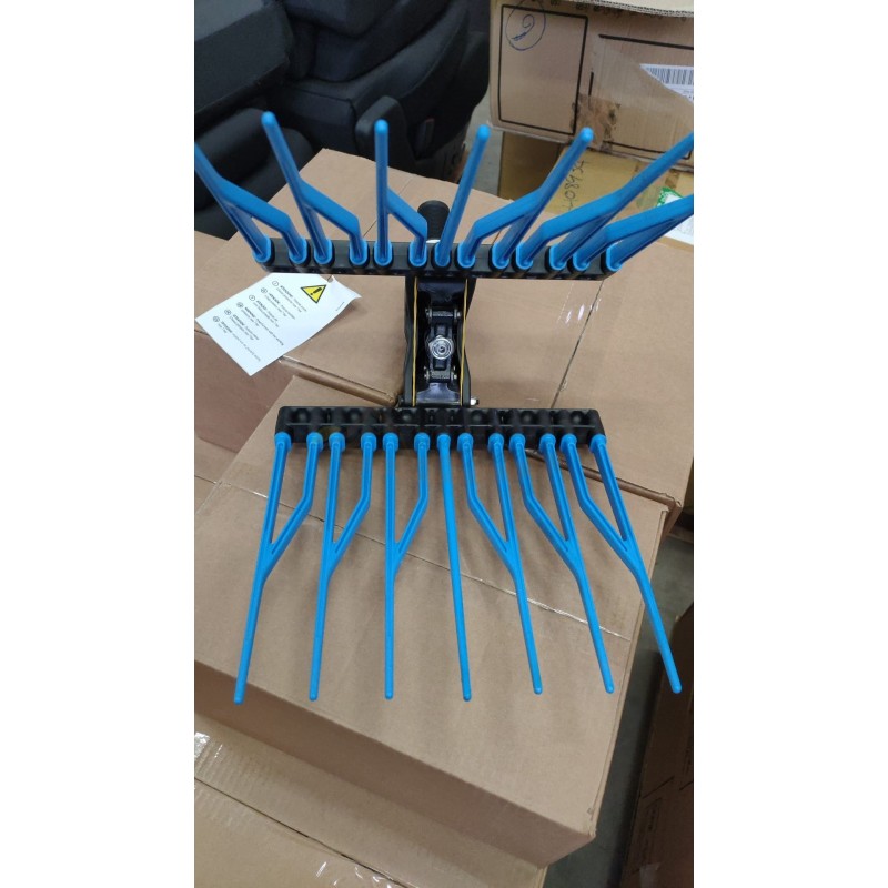 La gran innovación de IRON, cosechador neumático de la PROFESSIONAL Line de Campagnola, es el sistema de «short stroke», el recorrido corto de los rastrillos que permite reducir su apertura aumentando la velocidad hasta 1470 golpes por minuto, otorgando la máxima eficiencia de recolección incluso en presencia de aceitunas resistentes al desprendimiento de la rama.