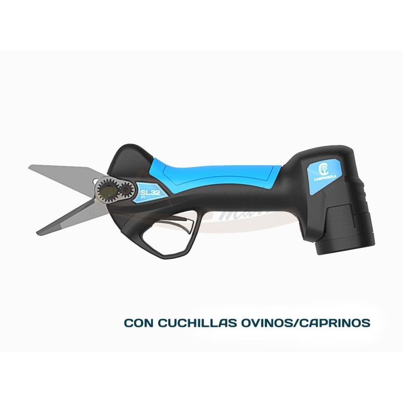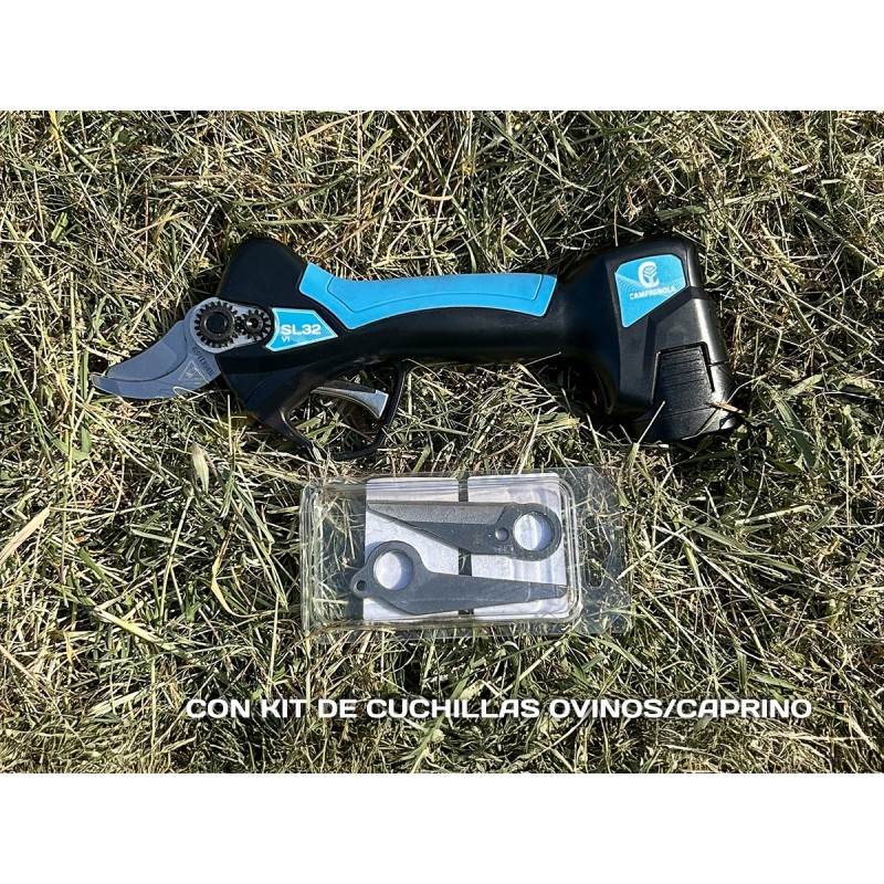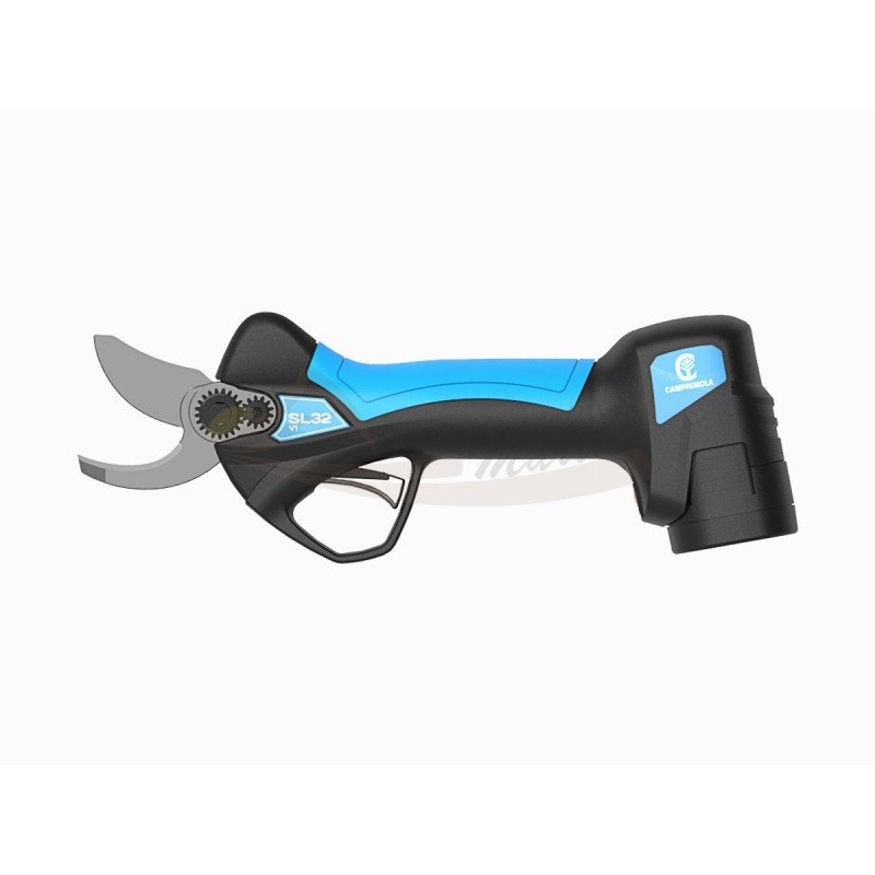Tijera eléctrica SL 32 V1 de Campagnola, compacta, ligera y potente, diseñada para el mantenimiento de áreas verdes. Pertenece a la gama Green Line, pensada para profesionales del podado y jardinería.