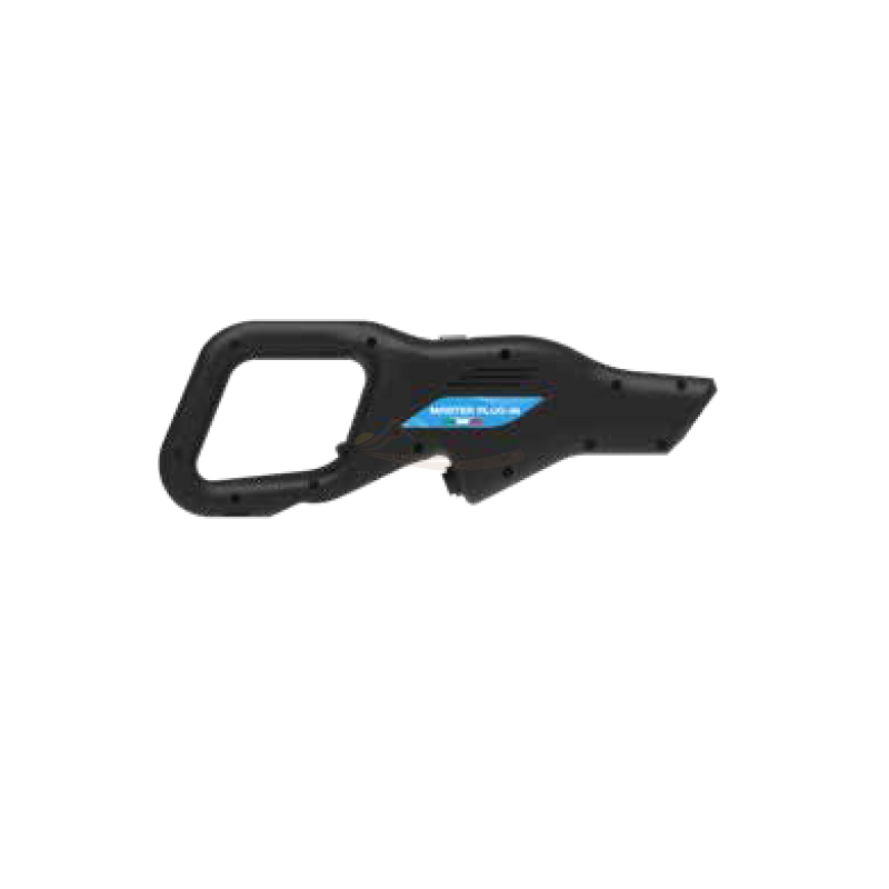 Empuñadura para cosechador eléctrico MASTER PLUG-IN de Campagnola, con diseño ergonómico de tres puntos de agarre e interruptor ON/OFF con fusible de protección para confort en recolección prolongada.