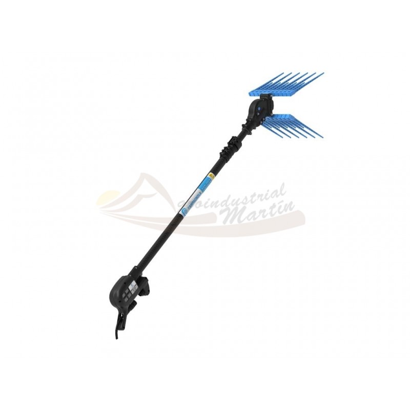 ELEKTRA es un cosechador eléctrico rápido con cabezal recolector de movimiento contrapuesto que asegura excelente distribución del peso para reducir fatiga en el operario. La tapa y dientes flexibles intercambiables están fabricados en tecnopolímero de alta resistencia, optimizando la recolección en plantas bien podadas. Se conecta a alargadora fija o telescópica y funciona con batería de plomo-ácido de 12 V (70/80 Ah) de coche, proporcionando autonomía para una jornada completa de trabajo.