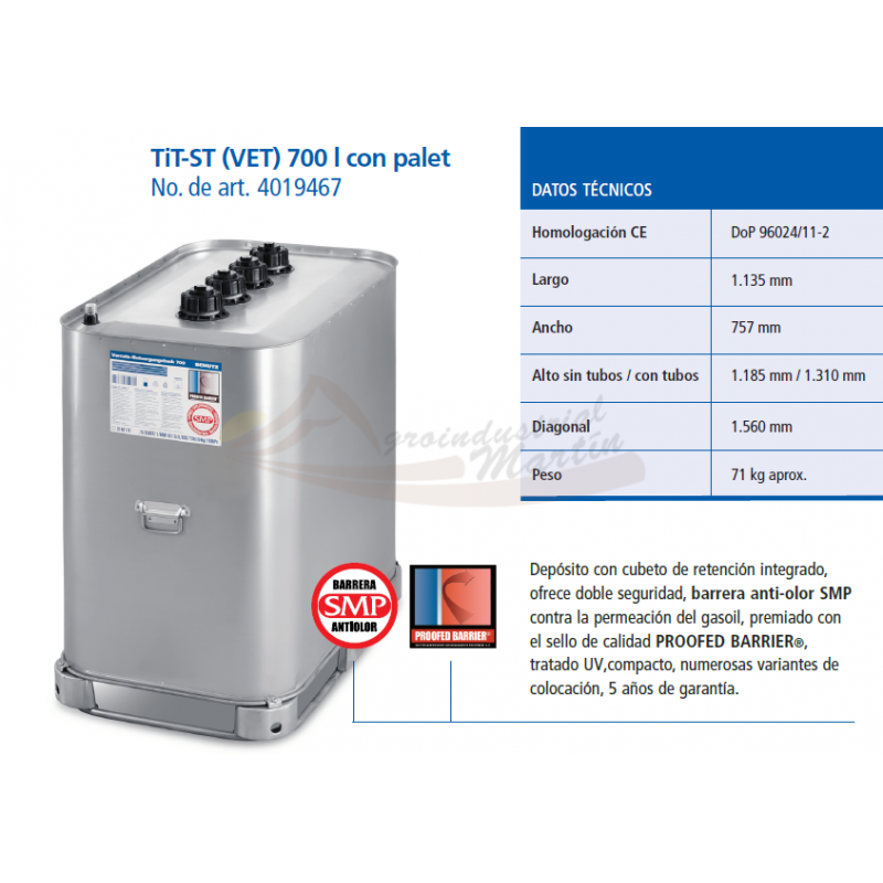 Depósito con cubeto de retención integrado, ofrece doble seguridad, barrera anti-olor SMP contra la permeación del gasoil, premiado con
