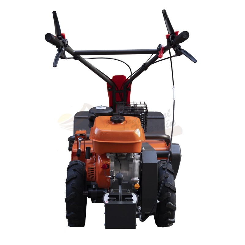 Su sistema de corte está compuesto por 36 martillos flotantes distribuidos en un plato de gran ancho, lo que junto con los 700 mm de ancho de trabajo permite cubrir franjas amplias con cada pasada. La transmisión por correa con 3 marchas adelante + 1 marcha atrás y el ajuste de altura de corte de 5 a 50 mm aportan control y versatilidad en diferentes condiciones de terreno.