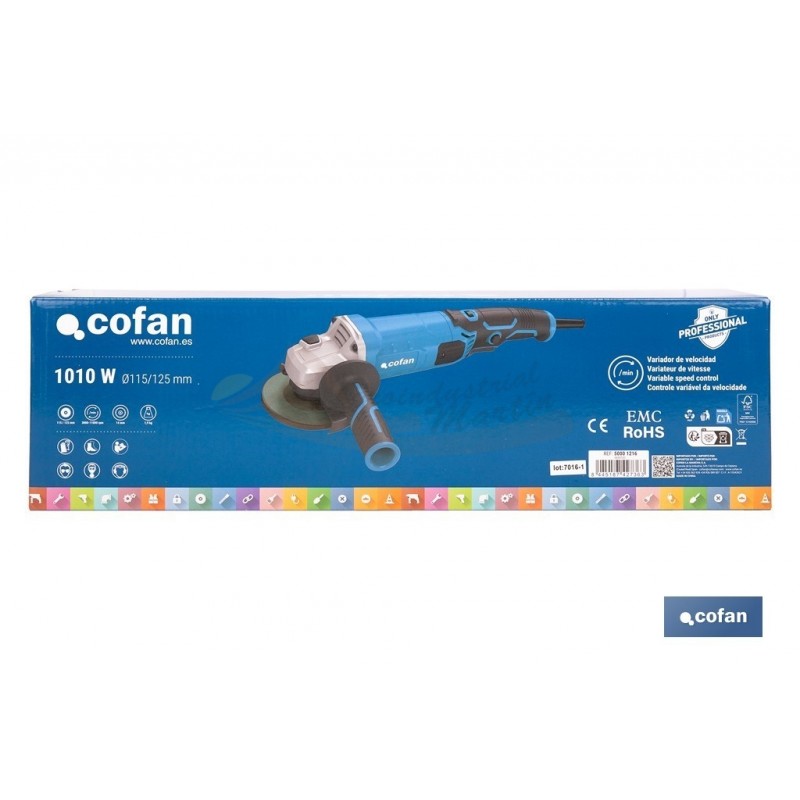 Amoladora angular eléctrica 1010 W Ø115/125 mm con velocidad variable 3000-11000 rpm