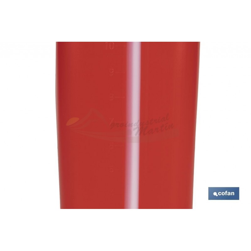 Bidón fabricado en polietileno reforzado con una densidad superior a 1,2 g /cm3. Válido para todo tipo de petróleos líquidos a excepción del Benceno, Tolueno y Xileno. En caso de temperatura elevada, llenar máximo ¾ partes del bidón. Homologado para RID/ADR
