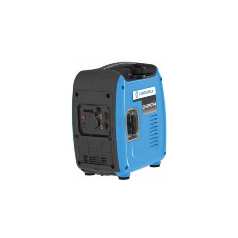 Generador eléctrico ENERGY4 de Campagnola, con inversor para salida 230 V AC y 12 V DC, potencia nominal de 1 kW y capacidad para alimentar hasta cuatro cosechadores
