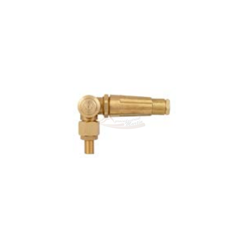 Pulverizador regulable con geometría curvada y sistema antigota integrado, conexión rosca macho 1/2", diseñado para orientar el chorro con precisión y eliminar goteo residual en tratamientos fitosanitarios intensivos.