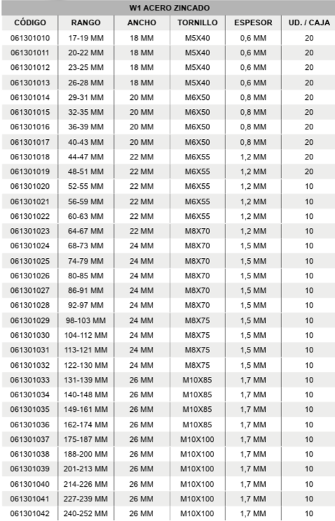 ABRAZADERA TORNILLO CON BARRILETES W1 ACERO ZINCADO MANGUERA - SOMAFLUIDS