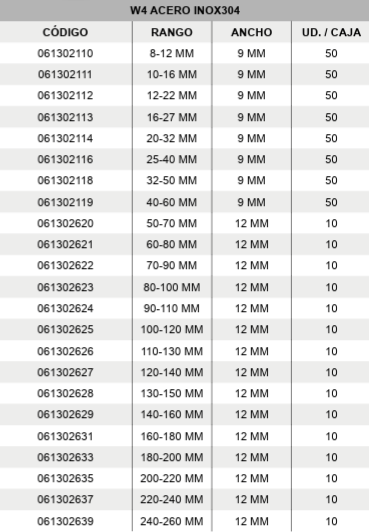 ABRAZADERA TORNILLO SIN FIN W4 ACERO INOX 304 MANGUERA