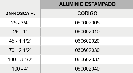 BARCELONA ROSCA HEMBRA ALUMINIO ESTAMPADO PARA MANGUERA