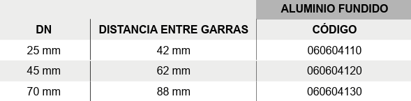 Son racores sin sexo con 3 patillas que aseguran el cierre enfrontándolas entre sí. Pueden soportar presiones de trabajo de hasta 15 bar. Las roscas son del tipo BSPP (rosca gas paralela). El material utilizado en los racores es el aluminio (estampado o forjado) o el latón. Las juntas son de NBR.