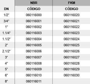 NBR: -10ºC a +80ºC FPM: -20ºC a +180ºC PTFE: -30ºC a +300ºC |