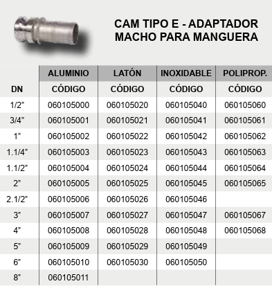 Nuevo CAMLOCK TIPO E ADAPTADOR MACHO PARA MANGUERA - SOMA Ver más grande