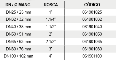 Las espigas son dentadas (existe la opción de espiga lisa) También existe la gama para soldar. Racores según la normativa DIN 11851