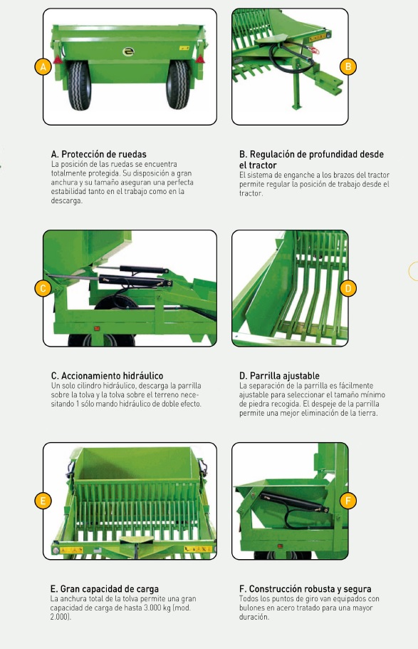 Las despedregadoras de arrastre son ideales para terrenos muy pedregosos con piedras de gran tamaño y en terrenos de nuevas implantaciones agrícolas.