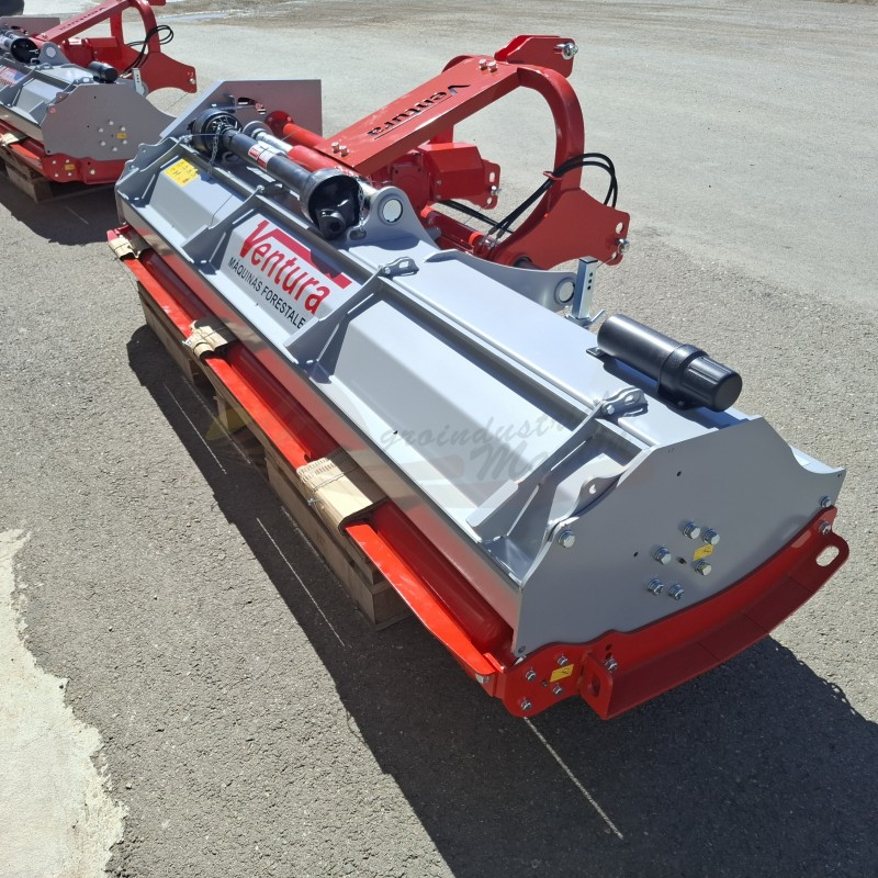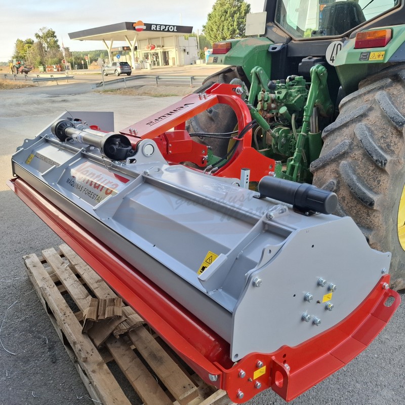 Equipada con un rodillo posterior, desplazamiento hidráulico, regulación en altura, placas protectoras, grupo resistente